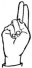 На ћирилици написано ЉУБИЦА БЕТЕГАЛО састоји се из 14 слова [?]. Исписано ћириличном једноручном азбуком за глувонеме:
